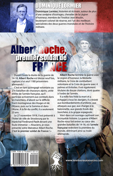 Durant la Première Guerre mondiale, Albert Roche s'engage volontairement au 27e bataillon de chasseurs alpins. Blessé neuf fois, il capture à lui seul 1 180 prisonniers allemands. Sa bravoure lui vaut d'être présenté par le maréchal Foch comme le premier soldat de France. Décoré de la Légion d'honneur, de la Médaille militaire et de la Croix de guerre, il devient un symbole de la résistance française. Ce livre retrace son incroyable parcours au coeur des grandes batailles de la guerre, où il a affronté les pires dangers. Afficher moinsAfficher plus