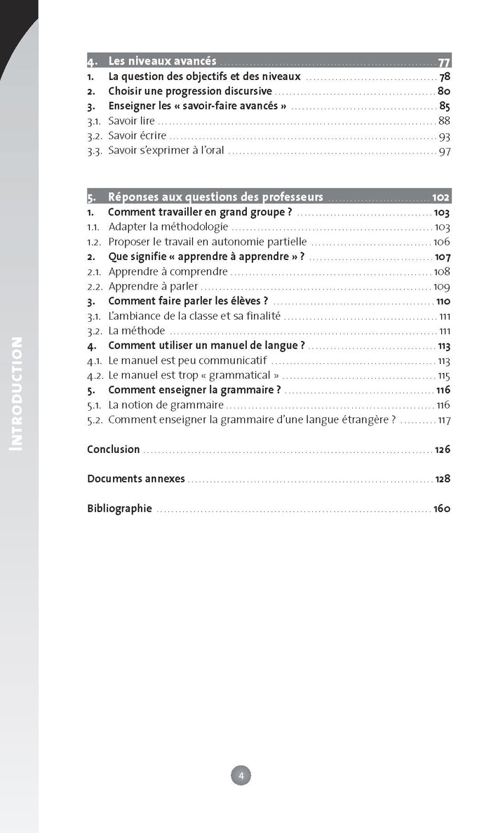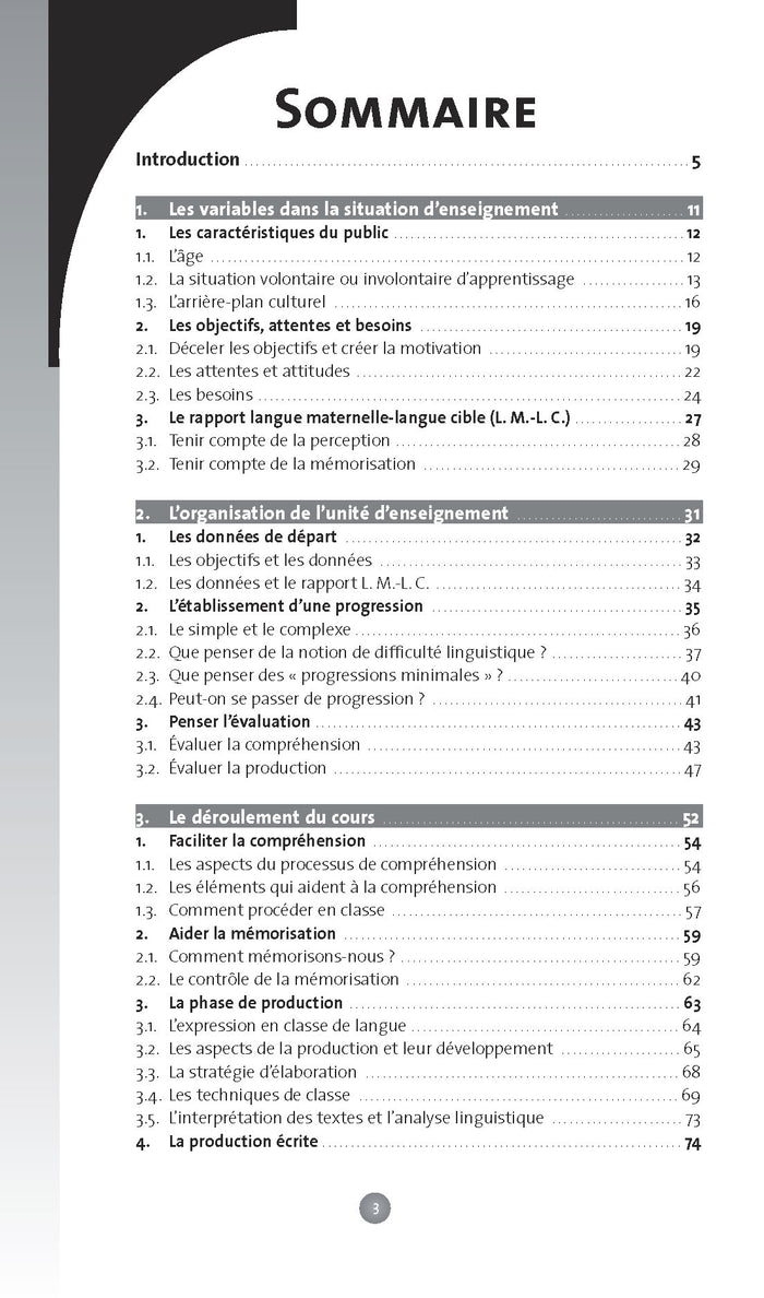 Ce guide s'adresse aux enseignants de Français Langue Étrangère et leur fournit des outils pour la conception de cours. Structuré en plusieurs chapitres, l'ouvrage aborde les variables à prendre en compte en situation d'enseignement, l'organisation d'une unité d'enseignement, le déroulement du cours, la gestion des niveaux avancés et les questions fréquentes des professeurs. Des annexes et une bibliographie sont également fournies. L'auteur insiste sur l'importance de la communication et de la maîtrise de la structure pour développer la compétence en langue, en s'appuyant sur les apports de la psychologie de l'apprentissage. Afficher moinsAfficher plus