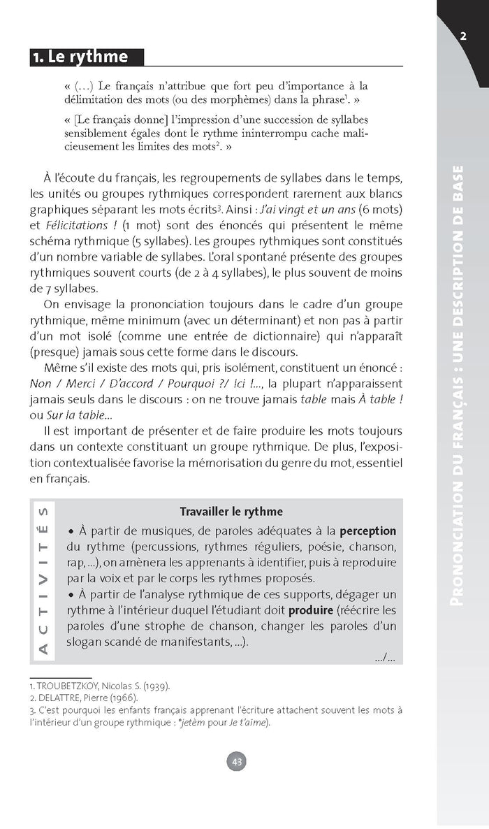PrésentationOrganisation générale de l'ouvrage : Préface  Introduction  Chapitre 1: Questions sur l'enseignement de la prononciation Chapitre 2: Prononciation du français : une description de base  Chapitre 3: Les apports théoriques et leurs pratiques  Chapitre 4: Les techniques d'enseignement de la prononciation Conclusion  Bibliographie Lexique Morpho-phonologie des voyelles Objectifs et démarche pédagogique : Domaine sensible tant pour les enseignants que pour les apprenants, la prononciation du FLE est cependant primordiale dès qu'il y a intéraction avec un natif. Et dans le contexte de la classe de langue, la place accordéeà la prononciation est un bon indicateur de l'intérpet portéà"l'entrée effective dans la nouvelle langue".  Au-delà des outils et des moyens d'entraînementà la prononciation, l'ouvrage pose des questions sur l'engagement nécessaire tant de la part de l'enseignant que de l'apprenant pour mener au mieux un tel travail. Des exemples d'activités et d'exercices ainsi que des bases de donnéees lexicales et morphologiques invitent les enseignantsà réfléchir sur le processus d'acquisition d'une nouvelle prononciation,à aborder le domaine dans sa diversité età se forger leurs propres outils.  Afficher moinsAfficher plus