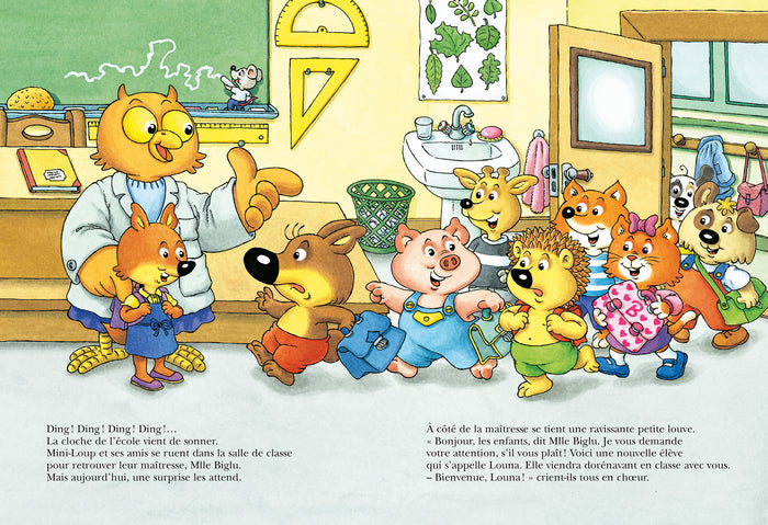 PrésentationQuand Mini-Loup et ses amis arriventà l'école ce matin, une belle surprise les attend: la maîtresse leur présente une nouvelleélève, une ravissante petite louve prénommée Louna. Toute la journée, Mini-Loup se sent tout drôle: il est distrait, maladroit et perd tous ses moyens chaque fois qu'il la voit... Serait-il amoureux? Afficher moinsAfficher plus