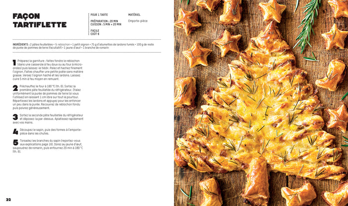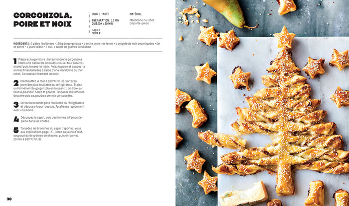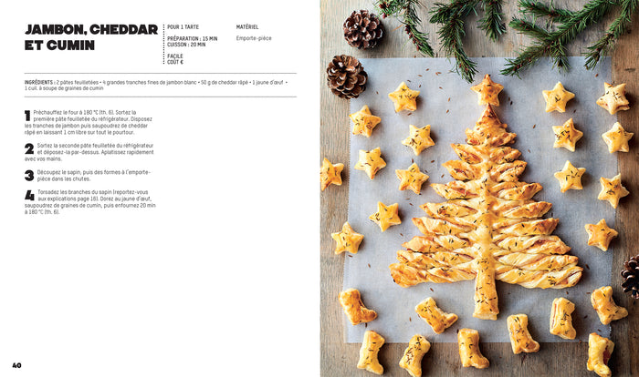 PrésentationFaciles et rapidesà préparer, les tartes sapin sont parfaites pour l’apéro. Accompagnées d’un assortiment de feuilletés maison, elles feront fureur sur vos tables de fête. Tarte sapin pesto et chèvre frais, Tarte sapin gorgonzola, poire et noix, Tarte sapin façon tartiflette…15 recettes salées et sucrées pour des apéros gourmands. Mini-croissants feuilletés, Roulés feuilletés, Champignons farcis, Mini-éclairs…15 recettes de bouchées et de feuilletés pour accompagner vos tartes sapin. Une introduction détaillée pour vous donne toutes les astuces pour réussir les recettes et un gabarit pour couper les tartes sapin. Afficher moinsAfficher plus