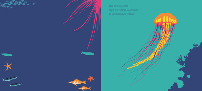 Présentation Jade plonge dans les eaux turquoise de l’océan. Une magnifique promenade, entre coraux flamboyants  et animaux marins multicolores, commence.  Quel trésor est-elle venue chercher ? Un livre tout en découpes laser. Afficher moinsAfficher plus