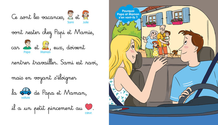 Dans cet ouvrage, les jeunes lecteurs accompagnent Sami et Julie chez leurs grands-parents. Ils participent aux activités au verger et au potager, avant de partager des moments complices avant le coucher. Une double page documentaire sur les grands-parents complète l'histoire. Un récit abordant la séparation, les vacances et la relation intergénérationnelle, destiné aux enfants à partir de 3 ans. Afficher moinsAfficher plus