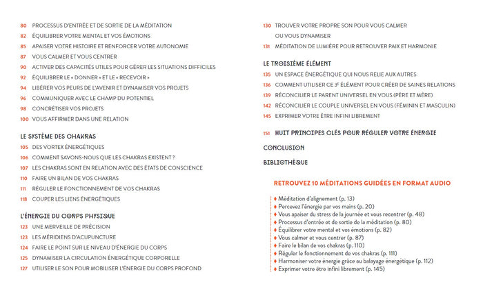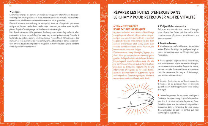 PrésentationEt si vous retrouviez votre plein potentiel et toute votreénergie physique, mentale etémotionnelle ?   Grâceà cet ouvrage, vous allez découvrir toutes les clés et conseils pour améliorer votre santé, harmoniser votre maison,énergiser votre alimentation, vous affirmer, vous centrer, vous libérer de la fatigue, des peurs et du stress, voire même communiquer avec votre futur  !   Vous apprendrezà travailler sur les chakras et les auras pour renforcer votreénergie, pratiquer des  autosoins, guérir et prévenir les fuitesénergétiques.   Pasà pas, 40 pratiques de travailénergétique vous sont proposées pour la vitalité, le nettoyageénergétique des lieux, des personnes, l’alimentation, la santé et le bien-être. Afficher moinsAfficher plus