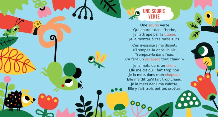 Ce livre propose une sélection de comptines sur le thème des animaux, accompagnées d'un imagier coloré. Les tout-petits pourront s'éveiller en chantant et en découvrant les différents animaux. Les pages sont plastifiées, ce qui rend l'ouvrage résistant aux manipulations des jeunes enfants. Afficher moinsAfficher plus