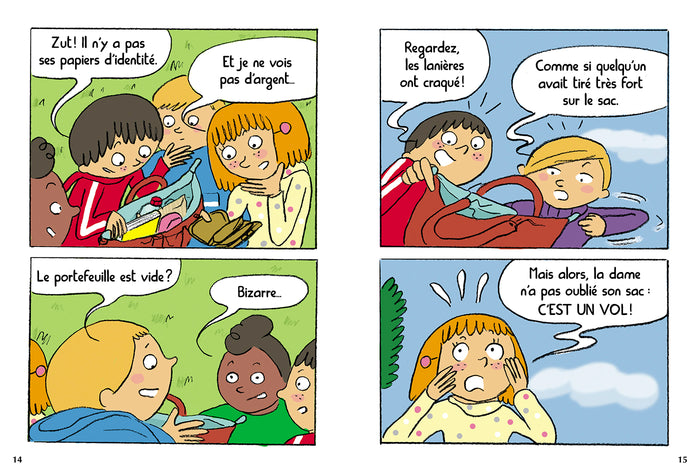Dans cette bande dessinée, les jeunes héros Sami et Julie se lancent dans une nouvelle enquête. Lors d'une partie de foot, Léna découvre un sac à main abandonné. Sami, Julie et leurs amis décident de retrouver sa propriétaire. Ils devront faire preuve d'ingéniosité pour résoudre cette énigme et retrouver la mystérieuse dame au sac à main. Adapté aux lecteurs à partir de 7 ans, ce livre combine une histoire captivante et un texte facile à lire, encourageant ainsi les jeunes lecteurs à s'immerger dans la lecture. Afficher moinsAfficher plus
