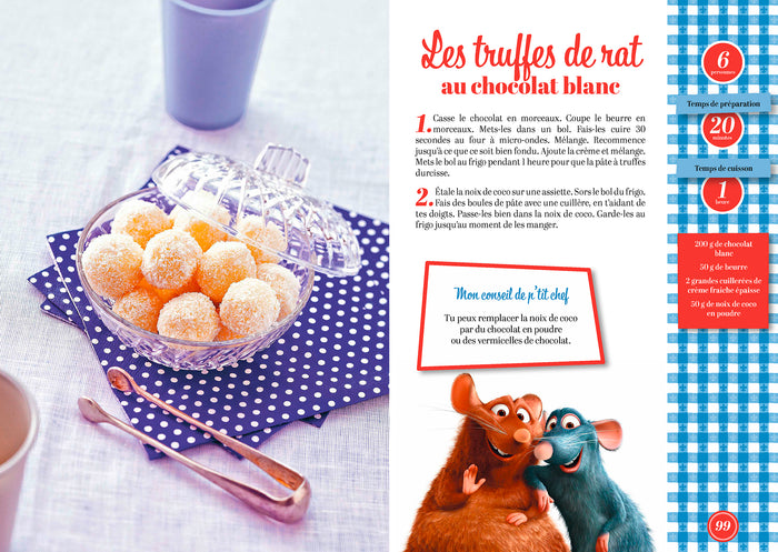 Dans cet ouvrage ludique, le célèbre personnage de Rémy, chef cuisinier du film Ratatouille, partage 50 recettes gourmandes et simples à réaliser. Les enfants y trouveront des classiques revisités comme la ratatouille, des cookies au chocolat, des croquettes de poulet, ou encore des brochettes de fruits. Chaque recette est accompagnée de conseils et astuces, permettant aux jeunes apprentis cuisiniers d'épater leur famille et leurs amis. Un livre idéal pour initier les enfants au plaisir de la cuisine, en compagnie de ce chef hors du commun. Afficher moinsAfficher plus
