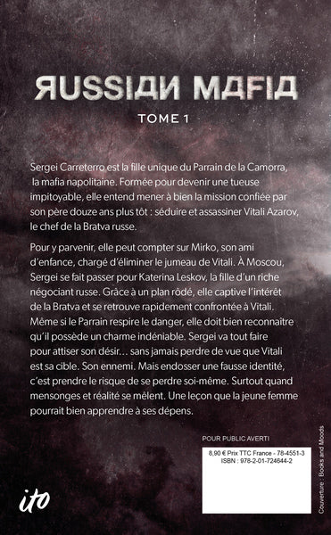 Sergei Carreterro, fille du Parrain de la Camorra, est formée pour devenir une tueuse impitoyable. Sa mission : séduire et assassiner Vitali Azarov, chef de la Bratva russe. Pour cela, elle se fait passer pour Katerina Leskov à Moscou. Mais attirée par Vitali, Sergei risque de perdre le contrôle. Entre mensonges et réalité, elle devra faire face à ses sentiments et à sa véritable identité. Un roman sombre mêlant mafia et romance. Afficher moinsAfficher plus