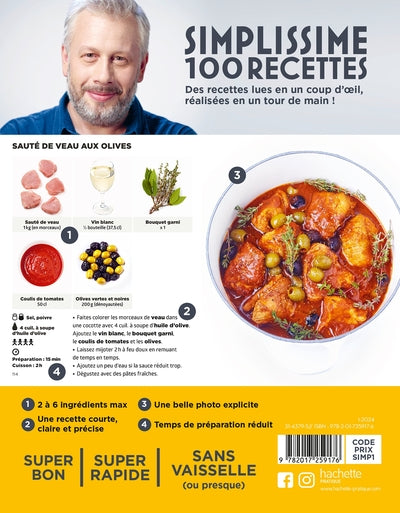 PrésentationSIMPLISSIME 100 RECETTES Des recettes lues en un coup d’œil, réalisées en un tour de main  !2à 6 ingrédients maxUne recette courte, claire et préciseUne belle photo expliciteTemps de préparation réduit  Super bon | Super rapide | Sans vaisselle (ou presque) Afficher moinsAfficher plus