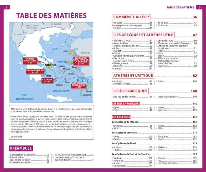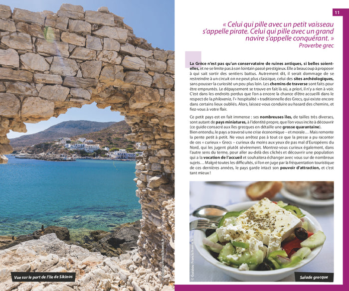 PrésentationNouvelle miseà jour du Routard, le guide de voyage n°1 en France ! Il n’y a pas deuxîles grecques qui se ressemblent. Santorin réserve un impressionnant spectacle en cinémascope. Amorgos inviteà explorer le grand bleu. Un calme olympien règneà Sikinos mais Mykonos ne dort jamais. Et Patmos offre un peu de spiritualité. DansLe RoutardÎles grecques et Athènes,misà jour par nos spécialistes, vous trouverez :Une première partie en couleurs pour découvrir la régionà l’aide de photos et de cartes illustrant les coups de cœur de nos auteurs  ;desitinérairesthématiques et géographiques, avec toutes les infos et astuces dont vous avez besoin pour réussir et profiter pleinement de votre voyage ;desactivités(humer l’atmosphère populaire d’Athènes en parcourant le matin les travées des halles, accoster dans le port majestueux d’Hydra, joyau desîles Saroniques…), desvisites(à Amorgos, l’île du Grand Bleu, visiter le monastère de la Panagia Chozoviotissa, le plus spectaculaire (et le plus photogénique aussi) de toute la Grèce, faire plus ample connaissance avec Stéfanos, le volcan de l’île de Nissyros.…),à partageren famille, entre amis ou en solo ;près de55 cartes et un plan détachableavec toutes les bonnes adresses du Routard positionnées ;et, bien sûr, le meilleur de la destination et des pas de côté pour découvrir lesÎles grecques et Athènes hors des sentiers battus…Mercià tous les Routards qui sont solidaires de nos convictions depuis 50  ans  : liberté et indépendance d’esprit  ; découverte et partage  ; sincérité, tolérance et respect des autres.   Afficher moinsAfficher plus
