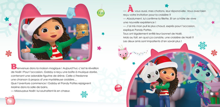 PrésentationMettez vos oreilles de chat et rejoignez Gabby, Pandy Pattes et leurs amis pour une mission sauvetage de Noël !Une histoire magique et féérique de Noël avec des sirènes pour faire rêver les enfantsÀ partager avec votre enfant pour patienter jusqu’à Noël ouà offrir en cadeau sous le sapin !Résumé : Pour fêter Noël, Gabby et Pandy Pattes rejoignent Marineà bord de son bateau de croisière. Ils sont impatients de rencontrer Chacha Noël ! Mais il vient d'atterrir en urgence sur uneîle déserte, et il aurait bien besoin d'un coup de patte pour assurer la distribution des cadeaux ! Que la mission sauvetage commence! Dès 3 ans. Afficher moinsAfficher plus