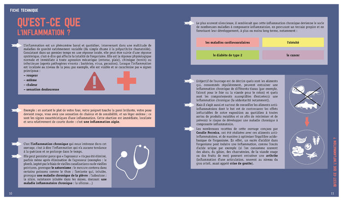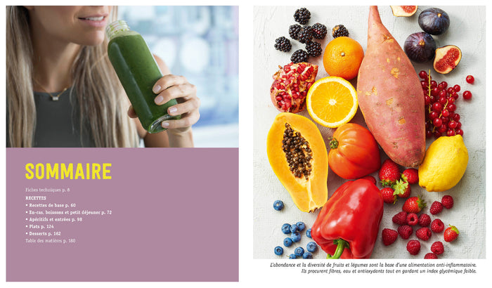 Ce livre propose des conseils pratiques et des recettes pour lutter contre les inflammations chroniques, qui sont associées au développement de maladies telles que les maladies cardiovasculaires, le diabète de type 2 ou le cancer. L'autrice, une nutritionniste, explique comment adopter une alimentation anti-inflammatoire, quels aliments favoriser et quels modes de vie adopter. Le livre comprend également 60 recettes équilibrées et gourmandes.