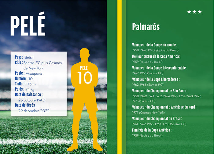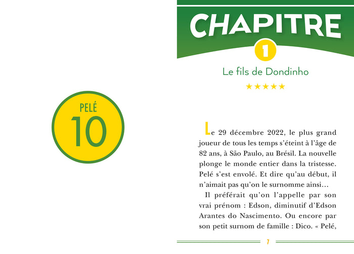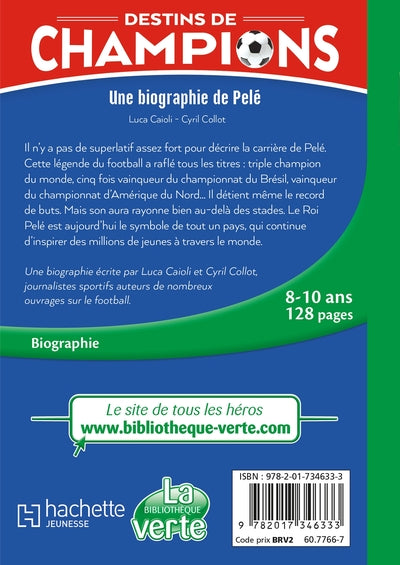 PrésentationIl n’y a pas de superlatif assez fort pour décrire la carrière de Pelé. Cette légende du football a raflé tous les titres : triple champion du monde, cinq fois vainqueur du championnat du Brésil, vainqueur du championnat d’Amérique du Nord… Il détient même le record de buts. Mais son aura rayonne bien au-delà des stades. Le Roi Pelé est aujourd’hui le symbole de tout un pays, qui continue d’inspirer des millions de jeunesà travers le monde. Une biographieécrite par Luca Caioli et Cyril Collot, journalistes sportifs auteurs de nombreux ouvrages sur le football. Destins de champions, la série de biographies 100 % sport !Toute la vie et la carrière de la légende Pelé racontée dans cette biographie inéditeUne biographie richement documentée, illustrée par des photos  du championComprend une fiche d'identité du joueur, son palmarès et un quiz pour tester tes connaissances sur Pelé !Dès 8 ans. Afficher moinsAfficher plus