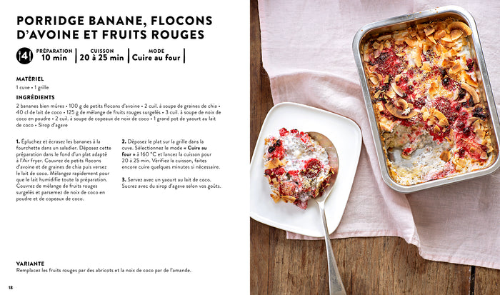 Présentation150 RECETES CROUSTILLANTES, SANS HUILE ET PLEINES DE SAVEURS Du petit déjeuner au dessert, en passant par l’apéritif, les entrées, les divers plats et les accompagnements, partezà la découverte de l’Air fryer pour des recettes savoureuses et gourmandes. Des plats sans huile, ou très peu,à tout moment de la journée et pour toutes les envies : cuisiner n’a jamaisété aussi simple ! Afficher moinsAfficher plus