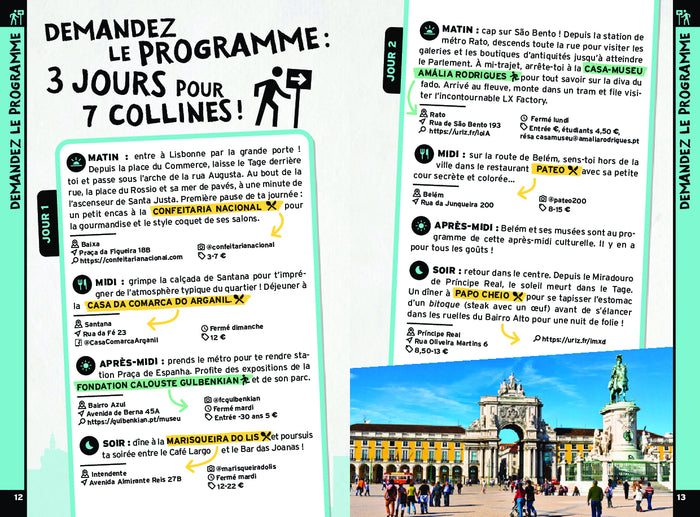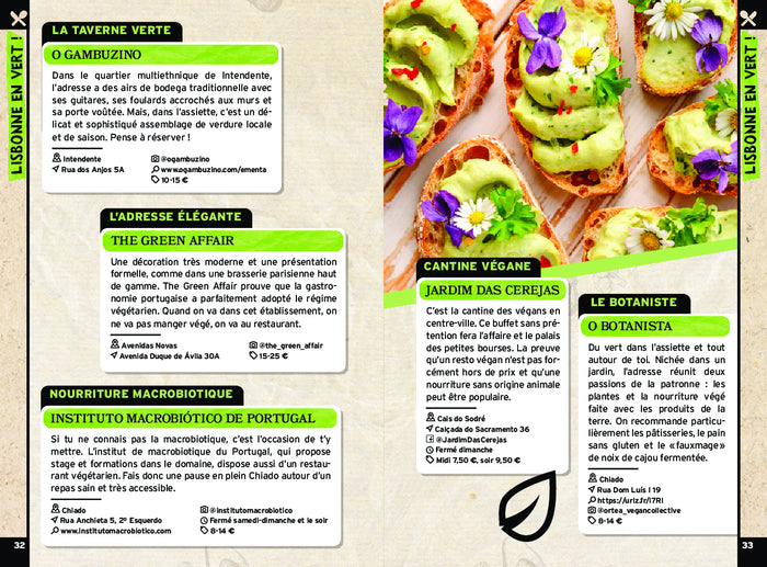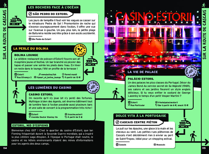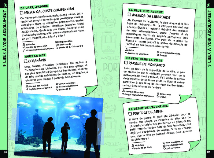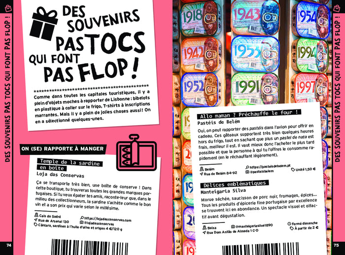 Présentation  Les meilleurs spots de Lisbonne 100  % locaux, 100  % renversants, sélectionnés par Charles Mathieu-Dessay, jeune journaliste expat. La tour de Belém, le quartier de l’Alfama, le fado et le tram 28  :ça, a priori, vous vous y attendez. Mais connaissez-vous la Pink Street, la statue de Pessoa attabléà sa terrasse, les meilleurs belvédères, le 7e pilier du pont du 25-Avril, les quartiers où l’on peut graffer en toute légalité  ? C’est bien ce qu’on pensait. Dans ce petit livre, vous trouverez exactement ce que vous cherchiez sans le savoir. Des typiques tavernes (tascas) aux adresses de street food, des barsà cocktailsélégants aux sous-sols où l’on danse en passant par le top des endroits instagrammables, découvrez la ville blanche comme si vous y viviez  !   Afficher moinsAfficher plus