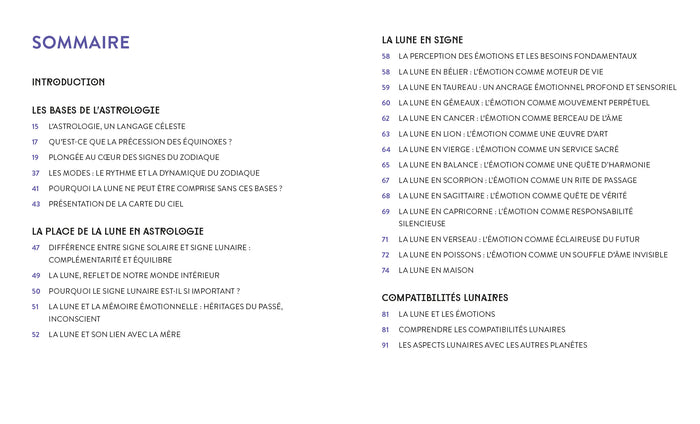 PrésentationSouvent reléguée au second plan derrière le Soleil, la Lune est pourtant la gardienne de notre monde intérieur. Elleéclaire nosémotions, nos besoins profonds et notre mémoire intime. Dans cet ouvrage clair et inspirant, l’astrologue Nathalie Ros vous guideà la découverte de cet astre mystérieux pour mieux comprendre son influence dans votre thème astral et sur votre personnalité.À travers ces pages, vous découvrirez toutes les clés pour explorez votre ciel intérieur, accueillir vosémotions,écouter vos besoins et transformer vos blessures en force. Afficher moinsAfficher plus