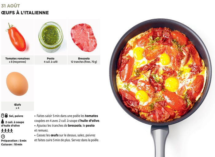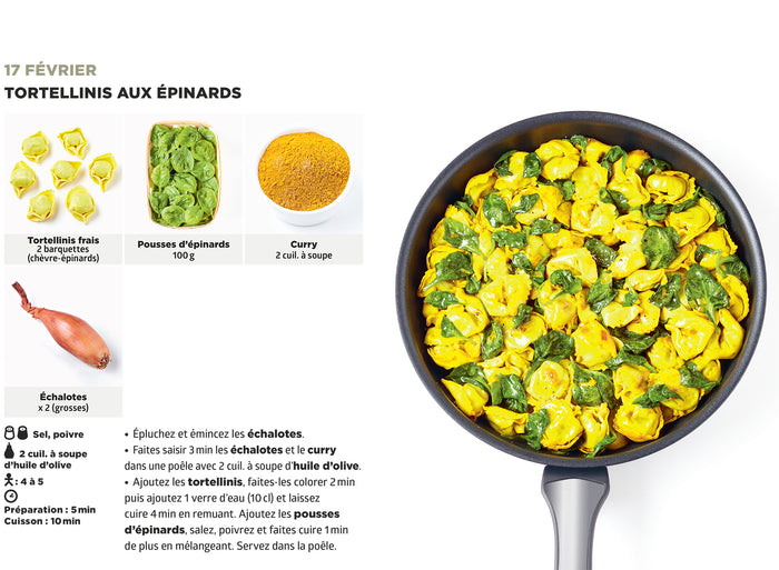 Ce calendrier propose 365 recettes de cuisine simples et rapides à réaliser, avec un minimum d'ingrédients et de vaisselle. Chaque recette est accompagnée d'une photo du plat final et est adaptée à la saison. Afficher moinsAfficher plus