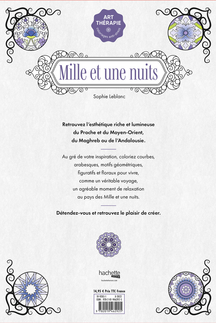 PrésentationRetrouvez l'esthétique riche et lumineuse du Proche et du Moyen-Orient, du Maghreb ou de l'Andalousie.  Au gré de votre inspiration, coloriez courbes, arabesques, motifs géométriques, figuratifs et floraux pour vivre, comme un véritable voyage, un agréable moment de relaxation au pays des Mille et une nuits.  Détendez-vous et retrouvez le plaisir de créer.  Afficher moinsAfficher plus