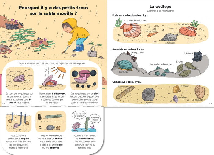 "Explique-moi la mer" est un documentaire jeunesse qui répond aux questions des enfants sur le thème de la mer. À travers 11 questions simples et pertinentes, posées à la manière des "pourquois", les jeunes lecteurs découvrent les mystères de l'océan. Des illustrations captivantes accompagnent les réponses, et des informations complémentaires sont fournies pour approfondir leur compréhension. Les enfants apprennent ainsi pourquoi la mer est salée, comment elle ne déborde pas malgré la pluie, s'ils existent des monstres marins, ou encore l'origine du sable. Une grande image finale récapitule les connaissances acquises. Un ouvrage pédagogique et ludique pour les petits curieux.