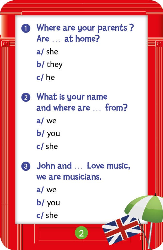 PrésentationQui sera champion en anglaisà la fin de la 6e ? Il sera facile de le savoir grâceà ces 240 quiz d'anglais.  Rédigés par des enseignants expérimentés, ces quiz permettent de tester de manièreludique  ses connaissances en grammaire anglaise, en vocabulaire anglais. Avec 3 niveaux progressifs. Afficher moinsAfficher plus