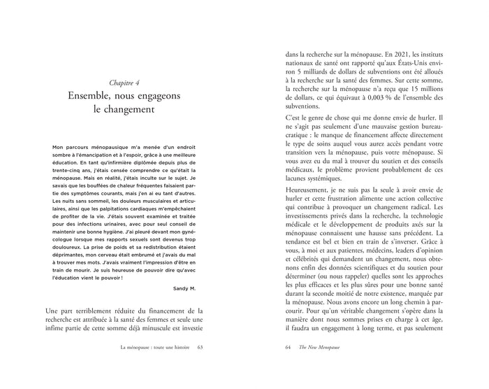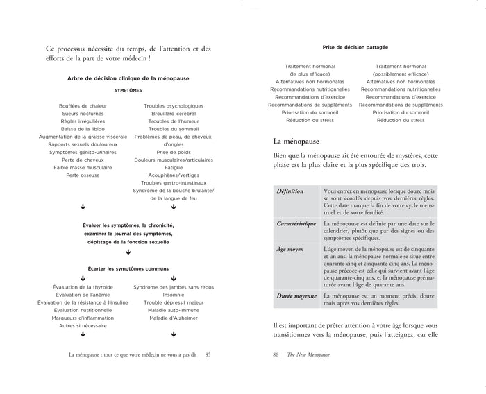 Présentation  Bouffées de chaleur, insomnies, sautes d’humeur, prise de poids… Ces symptômes vous parlent ?   Si la ménopause est uneétape naturelle, c’est aussi un véritable tremblement de terre hormonal. Et non, ce n’est pas«  dans votre tête » ! Ce bouleversement, qui touche chaque année 500 000 nouvelles femmes en France, peut s’accompagner de 77 symptômes, des plus connus (fatigue, troubles du sommeil) aux plus inattendus (palpitations,épaule gelée, problèmes dentaires).   Dans ce best-seller révolutionnaire, le Dre Mary Claire Haver, gynécologue et spécialiste de la santé des femmes, vous aideà comprendre ce qui se passe dans votre corps et vous donne les moyens d’agir.   Grâceà des solutions validées par la science et une boîteà outils complète, ce guide répondà toutes vos questions :  Quels traitements choisir pour soulager les symptômes et prévenir les risquesà long terme ?Comment démêler le vrai du faux, notamment concernant les traitements hormonaux de substitution ?Quels réflexes adopter pour s’épanouir etêtre au top malgré tous ces bouleversements ? Riche en témoignages inspirants,The New Menopausevous permettra de reprendre le pouvoir sur votre santé et d’être pleinementépanouie lors de cetteétape cruciale de la vie.   «  La ménopause est inévitable, mais la subir ne l’est pas ! » Dre Mary Haver.   Mary Claire Have, docteure en médecine et gynécologue-obstétricienne certifiée, est une experte reconnueà l’international, notamment pour ses recherches sur la ménopause. Pionnière dans la défense de la santé de la femme, elle a fondé le Mary Claire Wellness, un cabinet médical privé dédié aux femmes en milieu de vie. Afficher moinsAfficher plus