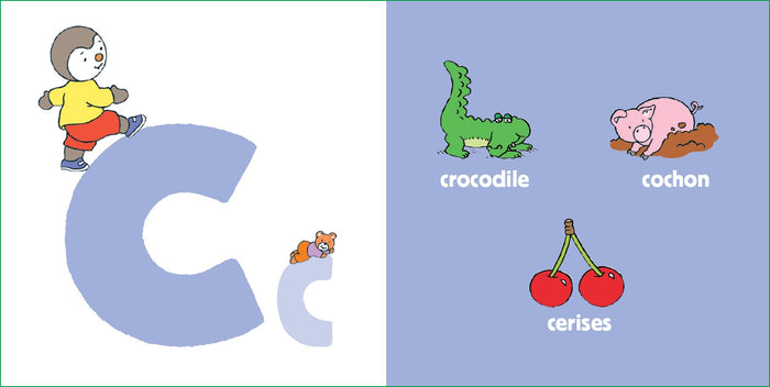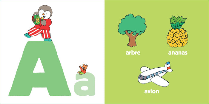 PrésentationUn premier ABC pour s'amuser à reconnaître les lettres avec T'choupi ! A comme arbre, ananas, et avion B comme bateau, ballon, baleine... Sur chaque double page, la lettre en majuscule et minuscule accompagnée de T'choupi, et en face, des illustrations à reconnaître. Des images et des activités variées pour jouer avec les 26 lettres de l'alphabet dansun beau livre cartonné aux coins arrondis, adapté aux tout-petits, dès 2 ans. Afficher moinsAfficher plus
