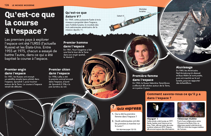 Des premières civilisations à la conquête de l'espace, en passant par l'Antiquité, le Moyen Âge, les grandes découvertes, les empires et les révolutions, jusqu'au monde moderne, tous les aspects de l'histoire humaine sont abordés de manière claire et concise.