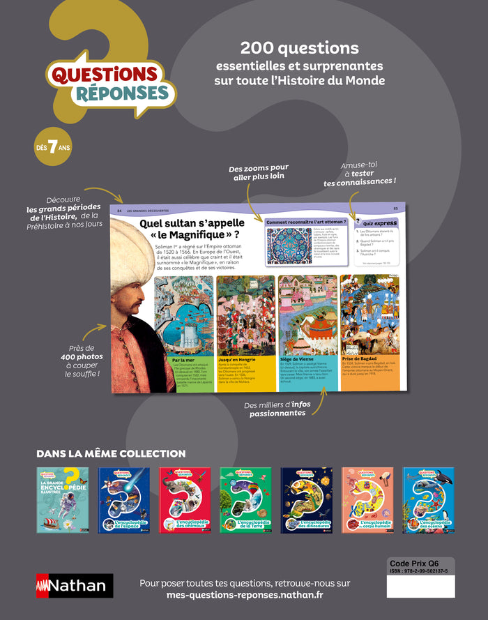 Plongez dans une fascinante aventure à travers les âges et découvrez le récit incroyable de l'humanité. Cette encyclopédie richement illustrée est conçue pour les jeunes lecteurs curieux, avec 250 questions d'enfants accompagnées de 400 photographies impressionnantes.