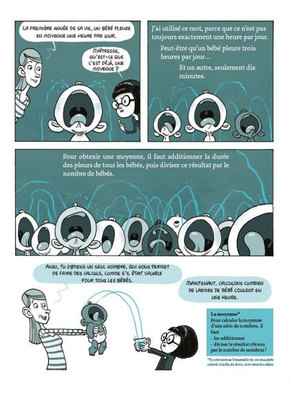 PrésentationLe roman BD qui va révolutionner notre vision des maths ! Ras-le-bol des cours de maths traditionnels ! 22 enfants de CM2 ont convaincu leurs enseignants : chaque semaine, un d'entre eux posera une question de maths en relation avec sa vie personnelle. Comment gagner à n'importe quel jeu ? Peut-on prendre un bain de larmes ? Comment préparer un dessert pour 7 personnes ? Et bien d'autres questions ! Chiara, Mano, Ahmed, Clément et les autres vont découvrir que les maths font partie de leur vie et qui sait, leur permettront de résoudre bien d'autres problèmes... Les maths, dans la vie, finalement c'est bien utile, et pas si difficile ! Un roman BD plein d'humour qui met en scène le problème de maths, dès 9 ans. Afficher moinsAfficher plus
