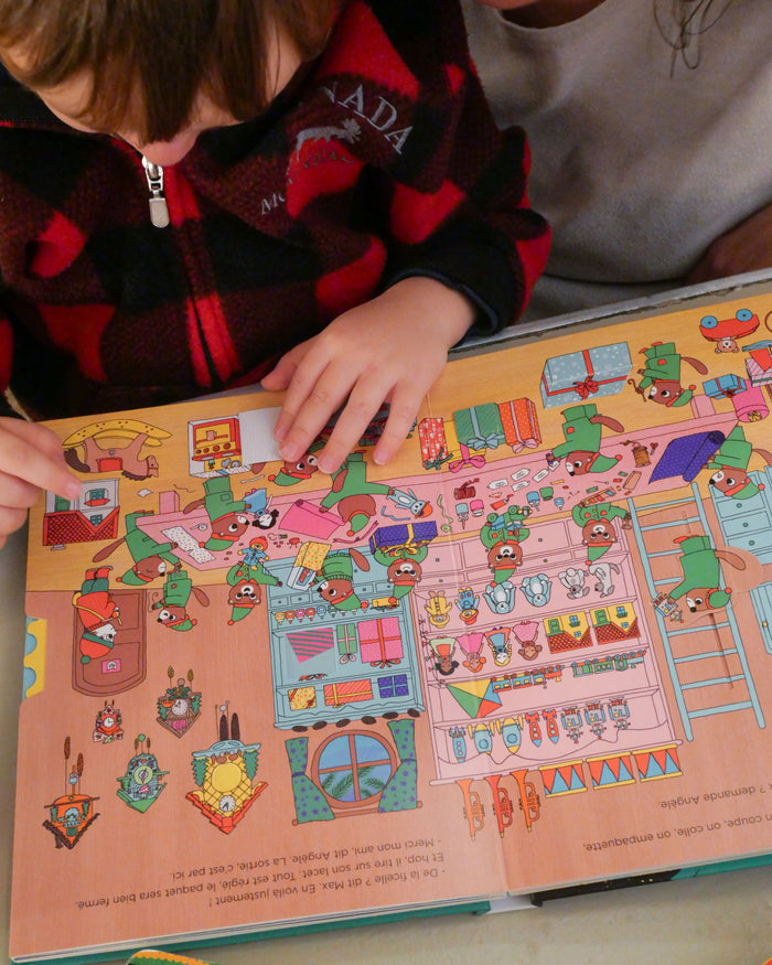 Max et Lapin se retrouvent dans une aventure hivernale au pied du sapin de leurs voisins. Alors que Max cherche le calme, un bruit mystérieux les entraîne dans un monde féérique où les animations se mêlent aux illustrations. Ils rencontreront des écureuils musiciens, un viking gourmand, des chats gymnastes et des souris préparant un festin. Une histoire charmante de Noël, mêlant magie, amitié et aventure, écrite par Astrid Desbordes et illustrée par Pauline Martin. Afficher moinsAfficher plus