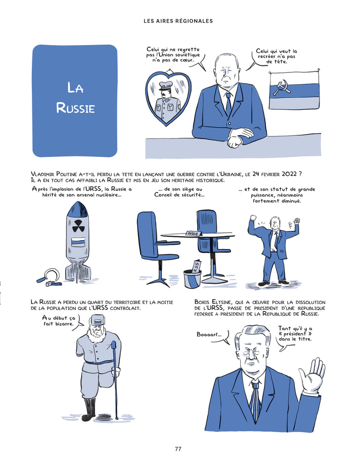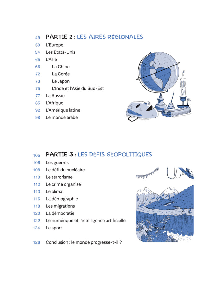 Dans cet ouvrage, le géopolitologue Pascal Boniface et le dessinateur Tommy proposent une plongée au cœur des enjeux internationaux contemporains. À travers des textes clairs, des cartes explicatives et des illustrations percutantes, ils abordent des thèmes tels que la mondialisation, les relations entre les grandes puissances, les conflits, le terrorisme, le changement climatique ou encore les enjeux numériques.