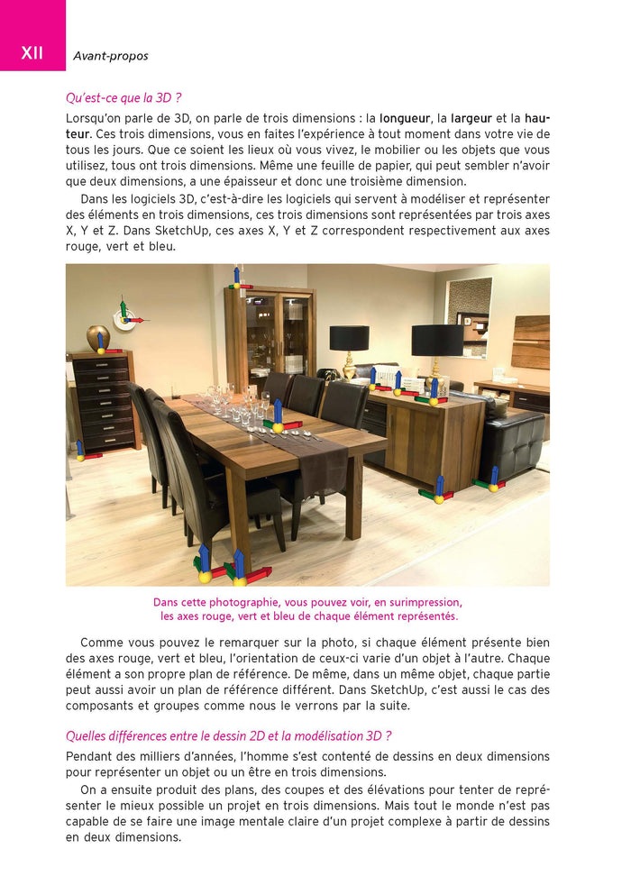SketchUp est un logiciel de dessin en 3D simple, rapide et intuitif conçu à l'origine pour les architectes, les ingénieurs et les designers. Sa version gratuite est également très répandue auprès des débutants et des amateurs souhaitant s'initier à la modélisation 3D. Ce guide permet d'apprendre à utiliser SketchUp par l'exemple : les fonctions essentielles de SketchUp sont expliquées à l'aide de cas pratiques et d'exercices concrets couvrant une grande variété d'utilisations. Contenu : L'installation et la présentation de SketchUp. Les outils de base de dessin, de construction et de modification. Le placement des matières colorées et texturées. L'utilisation des groupes et des composants. Le géopositionnement et l'orientation du modèle. L'importation de plans CAO (au format DWG) et la production d'images animées. La modélisation étape par étape d'une villa, de l'enveloppe extérieure jusqu'à l'aménagement du jardin et des espaces intérieurs en passant par la création de meubles. Afficher moinsAfficher plus