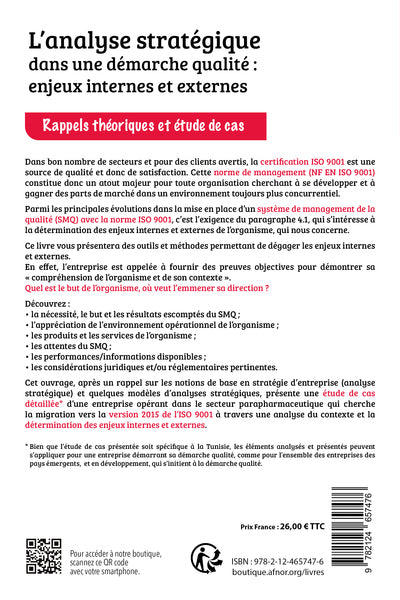 La certification ISO 9001 est un gage de qualité pour de nombreuses organisations. Ce livre propose des outils et méthodes pour identifier les enjeux internes et externes d'une entreprise, en accord avec les exigences de la norme. Il inclut une étude de cas d'une entreprise du secteur parapharmaceutique en transition vers la version 2015 de l'ISO 9001. Afficher moinsAfficher plus