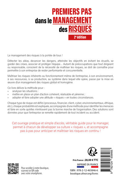 Ce livre propose une approche pratique du management des risques en entreprise. Yves Métayer explique comment détecter les aléas, anticiper les dangers, atteindre les objectifs, éviter les crises et protéger l'équipe. Il détaille les différents types de risques (processus, financier, client, cyber, environnementaux, éthique, etc.) et fournit des méthodes pour les identifier et les gérer. Un guide essentiel pour tout dirigeant ou responsable soucieux de la pérennité de son organisation. Afficher moinsAfficher plus