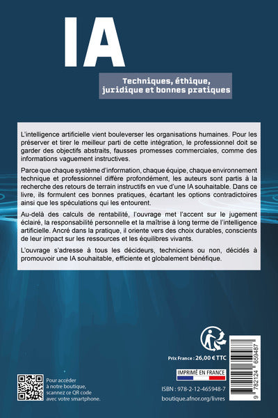 Présentation L'intelligence artificielle vient bouleverser les organisations humaines. Pour les préserver et tirer le meilleur parti de cette intégration, le professionnel doit se garder des objectifs abstraits, fausses promesses commerciales, comme des informations vaguement instructives. Parce que chaque système d'information, chaque équipe, chaque environnement technique et professionnel diffère profondément, les auteurs sont partis à la recherche des retours de terrain instructifs en vue d'une IA souhaitable. Dans ce livre, ils formulent ces bonnes pratiques, écartant les options contradictoires ainsi que les spéculations qui les entourent. Au-delà des calculs de rentabilité, l'ouvrage met l'accent sur le jugement éclairé, la responsabilité personnelle et la maîtrise à long terme de l'intelligence artificielle. Ancré dans la pratique, il oriente vers des choix durables, conscients de leur impact sur les ressources et les équilibres vivants. L'ouvrage s'adresse à tous les décideurs, techniciens ou non, décidés à promouvoir une IA souhaitable, efficiente et globalement bénéfique. Afficher moinsAfficher plus