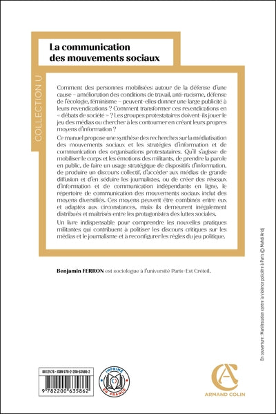Ce livre analyse les pratiques de communication des mouvements sociaux contemporains, mettant en lumière les stratégies médiatiques déployées par les militants. L'auteur examine comment ces mouvements utilisent les médias pour diffuser leurs revendications, mobiliser et légitimer leurs actions. Il questionne également les enjeux de visibilité et de représentation dans l'espace public, ainsi que les tensions entre communication militante et médiatique. En s'appuyant sur des études de cas et des entretiens avec des acteurs du mouvement social, Benjamin Ferron propose une analyse approfondie des dynamiques communicationnelles à l'œuvre.