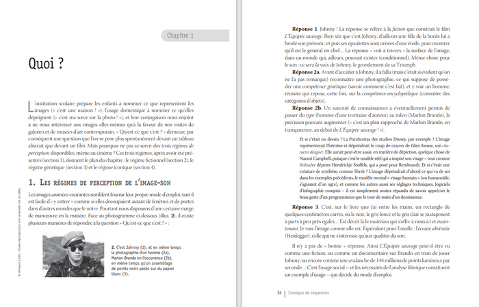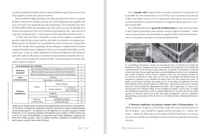 PrésentationComment analyser une séquence de film ? Qu’on s’y lance pour le plaisir ou dans le cadre d’un examen, il est prudent de partir bienéquipé. Ce livre est conçu comme une boîteà outils. Il fournit les bases indispensablesà l’exercice d’analyse, aussi bien en matière de technique que d’esthétique. Chacun des points est présentéà l’aide de tableaux, de photogrammes et d’exemples de films puisés dans toute l’histoire du cinéma. Nul besoin d’être un cinéphile accompli pour se les approprier. Des descriptifs d’épreuves, enfin, parmi celles qui comportent une analyse de séquence, sont misà jour et commentés : l’option cinéma du bac et des agrégations de lettres et d’arts plastiques, les concours d’entréeà l’ENS (Lyon et Paris),à la Fémis,à Louis-Lumière età l’INSAS (Bruxelles). Cette sixièmeédition actualisée propose quatre nouvelles analyses de séquences :1900(Bernardo Bertolucci, 1976),Lady Chatterley(Pascale Ferran, 2006),Abyss(James Cameron, 1989),Saute ma ville(Chantal Akerman, 1968).,SommaireIntroduction.Quoi ?Les régimes de perception de l'image-son. Le régime fictionnel. Le régime génétique. Le régime iconique.Comment ?Le récit desévénements de l’histoire. Le montage.À l’intérieur du plan : le point de vue. Les combinaisons audiovisuelles. Qu’est-ce qu’une séquence ?Pourquoi ?L’interprétation stylistique. L’interprétation culturelle. Quatre séquences analysées : «  Maudit soit le roi ! »  :1900.«  Ah, c'est vous ! »  :Lady Chatterley.«  Respire, nom de Dieu  ! »  :Abyss.«  Bang ! Bang ! »  :Saute ma ville.Descriptifs d’épreuves et conseils pratiques.Ecole et cinéma : je t'aime, moi non plus. L’exposé, le dossier, l’examen. L’option cinéma du bac. L’option cinéma dans les agrégations. Au concours d’entréeà l’ENS. Au concours d’entréeà la Fémis. Au concours d’entréeà Louis-Lumière.  Au concours d’entréeà l’INSAS de Bruxelles. Bibliographie. Sites web. Index des notions.Filmographie. Afficher moinsAfficher plus