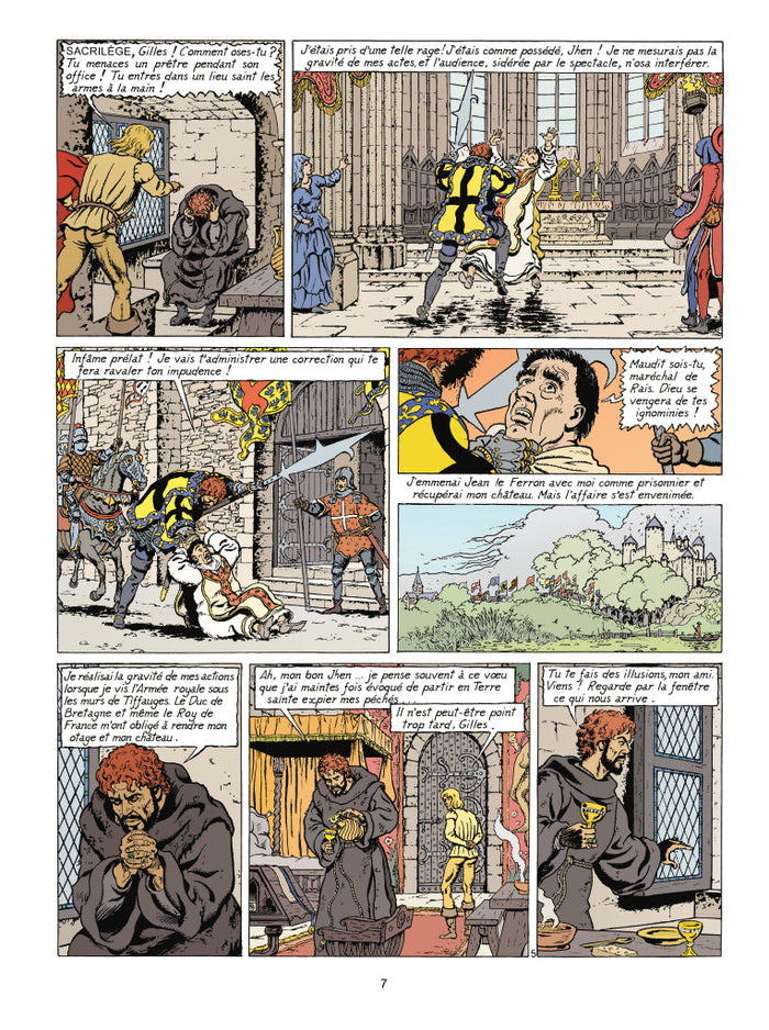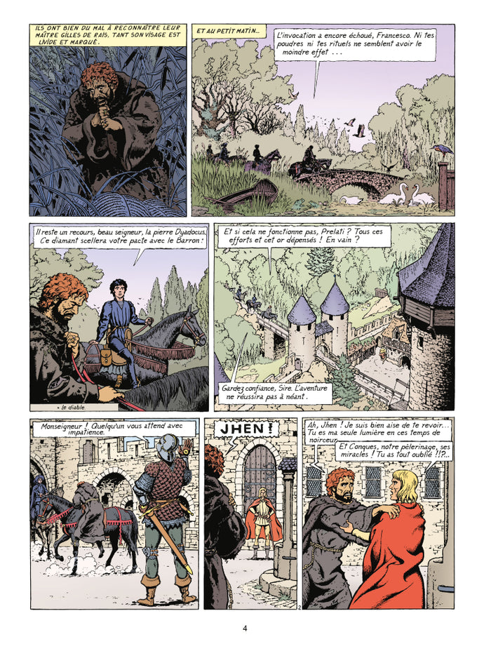 Ayant outrepassé toutes les convenances, ayant bafoué l'Église et molesté publiquement un homme de foi, Gilles de Rais, est arrêté. Malgré ses nombreuses tentatives d'invocation, le diable reste sourd aux appels du seigneur de Tiffauges. Gilles se pense perdu. À moins que... pour sauver son ami d'un procès difficile, Jhen se lance à la recherche de la statuette de la vierge qui pleure, seule relique semblant permettre à Gilles de revenir dans le droit chemin. Mais les heures passent et le procès avance.Biographie de l'auteurNé à Strasbourg en 1921, sous le signe de la Balance, Jacques Martin découvre très tôt la bande dessinée au travers des grands albums allongés de Buster Brown, par Richard F. Outcault, publiés chez Hachette. C'est au verso de ces pages qu'il fait ses premiers dessins ; la plupart représentant des avions (son père était aviateur) ou des personnages moyenâgeux. Cette passion pour le dessin naît en même temps qu'un goût immodéré pour l'Histoire. Son enfance chaotique se passe à cultiver ces deux jardins secrets en travaillant sans relâche à la maîtrise des techniques du dessin et à l'apprentissage de sa science de prédilection. Désireux d'entrer aux Beaux-Arts, dans l'optique de faire du dessin un métier, il ne parvient toutefois pas à concrétiser pleinement ce rêve. En effet, sa mère et ses tuteurs officiels l'orientent d'autorité vers les Arts et Métiers, où il reçoit un enseignement purement technique. Il en reconnaîtra lui-même plus tard l'utilité, contraint qu'il fut de se rompre aux rudiments de la perspective et de la descriptive. Cette première formation n'est sûrement pas étrangère à la rigueur obstinée dont Jacques Martin a fait preuve tout au long de son oeuvre et qui a probablement contribué à en faire l'un des trois principaux représentants de l'école dite « de Bruxelles », les deux autres étant Hergé et Jacobs bien sûr. La critique a légitimement rapproché le travail de ces trois auteurs qui, en plus de s'être beaucoup fréquentés et d'avoir collaboré en maintes occasions, partagent un idéal artistique fait de réalisme, de probité et de minutie. Une demi génération sépare Jacques Martin de ses prestigieux aînés. Il ne commence à publier qu'à partir de 1946, dans l'hebdomadaire Bravo où il crée, un peu par hasard, Monsieur Barbichou. Durant les trois années qui suivent, il multiplie les collaborations éphémères avec des publications bruxelloises et wallonnes conjuguant l'art de la bande dessinée et celui de l'illustration. Dans l'impossibilité de faire face à tous ses engagements, il se fait assister pour les décors et la mise en couleur de ses bandes dessinées par un graphiste nommée Leblicq. C'est de cette association que naît le pseudonyme Marleb, obtenu par contraction de Martin et de Leblicq. Cette collaboration prend fin au bout d'un an, mais Jacques Martin n'en continue pas moins d'utiliser ce patronyme masqué. Jusqu'en 1948, il alterne les séries réalistes avec les séries humoristiques. Le premier récit à suivre, dessiné pour Bravo est Lamar, l'homme invisible qui s'apparente fort à Flash Gordon dont les aventures paraissaient également dans l'hebdomadaire. Dans la foulée, il crée Oeil de Perdrix, nouveau héros dont