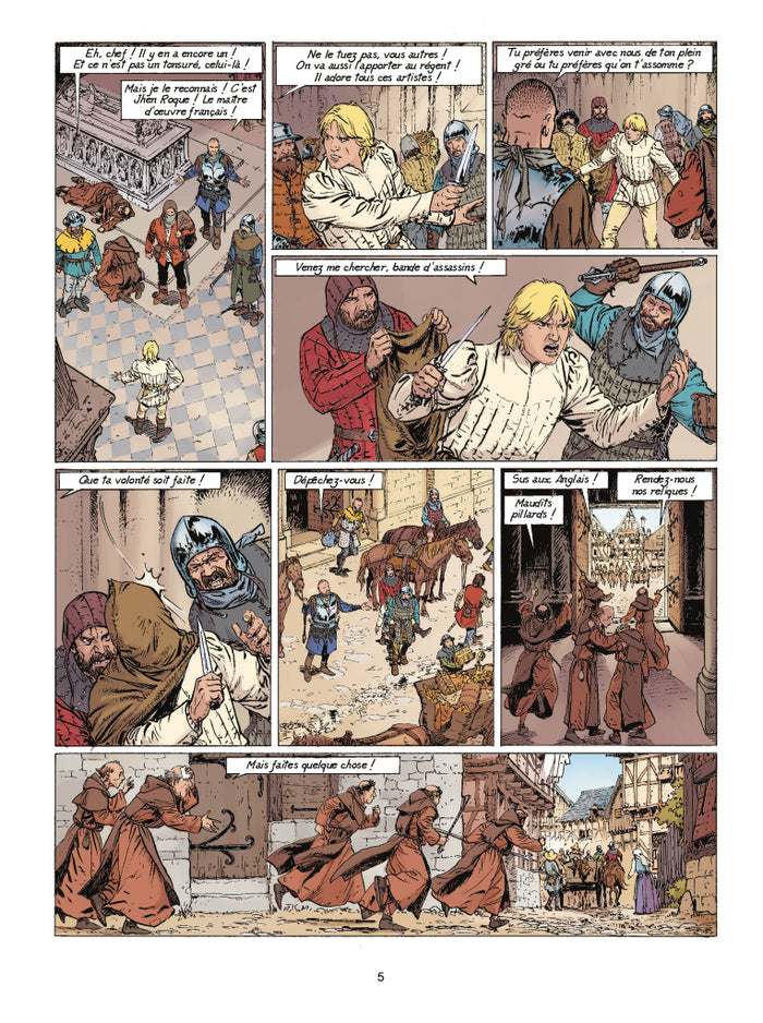 PrésentationJhen est fait prisonnier par une milice anglaise alors qu'il est en visite dans la ville de Caen. Ceux-ci pillent une abbaye qui recèle d'oeuvres d'art magnifiques. Le héros est emmené à Bayeux, ville aux mains de l'ennemi. Il y découvre la magnifique tapisserie qui orne la cathédrale, ainsi que les histoires et les complots qu'elle évoque. Mais les aventures ne restent pas uniquement emprisonnées dans un passé glorieux. Afficher moinsAfficher plus