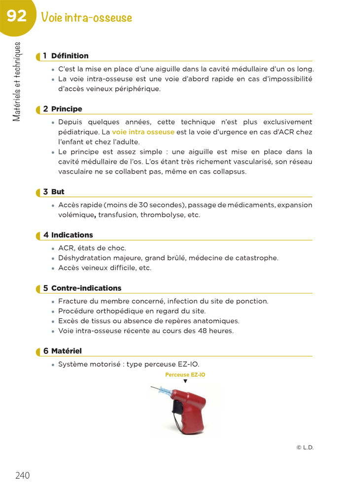 PrésentationCet ouvrage,recueil de fiches synthétiques, aborde l’ensemble des situations courantes rencontrées lors de l’exercice en extrahospitalier. Sont recensés :les principales pathologies de l’adulteles techniques mises enœuvre lors de leur prise en charge (gestion des voies aériennes, abords veineux, immobilisation…)la pharmacologiela législation en vigueurles différents scores d’évaluationClair, concis et d’un format adapté à notre pratique quotidienne, cet ouvrage se veut une référence pour tout professionnel paramédical et médical exerçant en extrahospitalier. Il viseà accompagner la prise de décision et conforter ainsi une prise en charge de qualité des patients. Ce guide s’adresseégalementàl’ensemble desétudiants et/ou professionnels de santéconcernés par cette discipline au cours de leur cursus. Afficher moinsAfficher plus