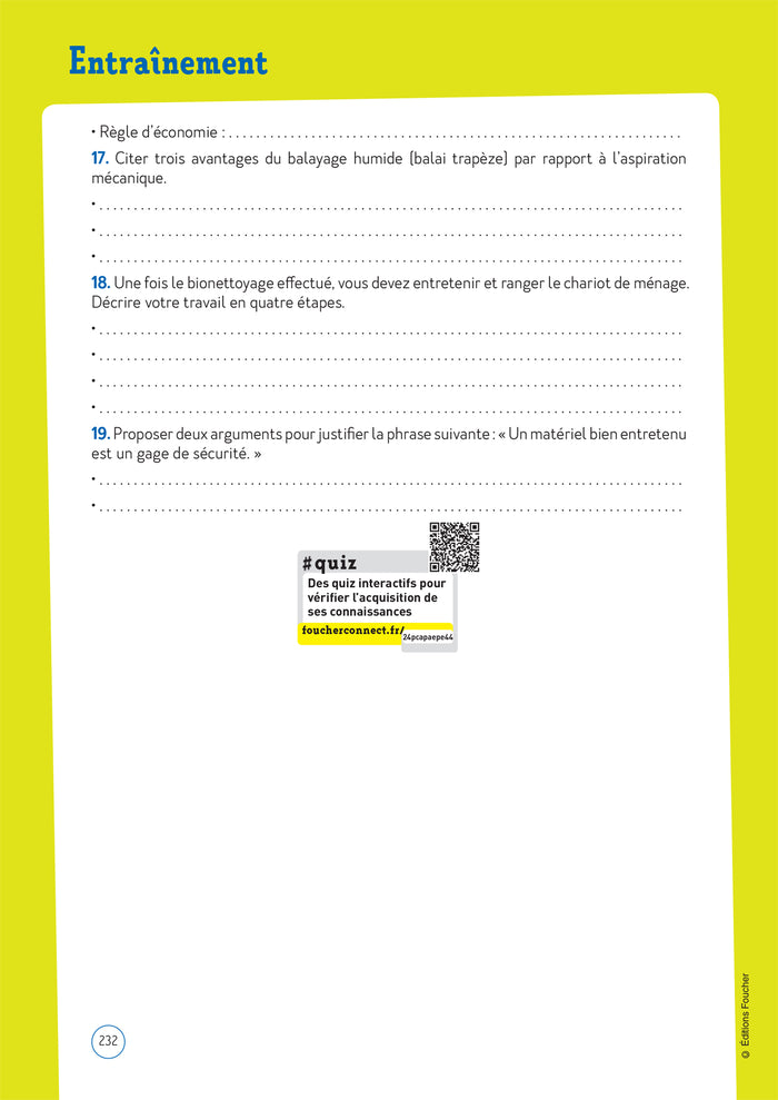 Ce manuel tout-en-un est conçu pour la préparation aux épreuves professionnelles du CAP Accompagnant éducatif Petite Enfance. Il comprend plus de 116 fiches de cours illustrées, plus de 200 QCM interactifs, des entraînements au format des épreuves, des fiches techniques, des conseils méthodologiques et des ressources numériques. Conçu par une équipe de professionnels et d'enseignants, il est un outil complet pour réussir son CAP. Afficher moinsAfficher plus