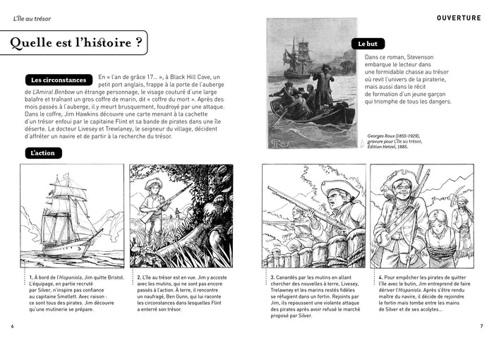 « L'Île au trésor » est un classique de la littérature anglaise, un roman d'aventure captivant écrit par Robert Louis Stevenson. L'histoire raconte les péripéties du jeune Jim Hawkins qui, en possession d'une carte menant à un trésor, embarque pour une île lointaine en compagnie de pirates sans scrupules. Sur place, il fera équipe avec le courageux Long John Silver, tout en devant affronter les dangers de l'île et la trahison qui le guette. Entre trésor caché, combats navals et alliances mouvantes, Jim devra faire preuve de bravoure et d'ingéniosité pour survivre. Un récit intemporel qui séduit les lecteurs de tous âges par son suspense et son exotisme. Afficher moinsAfficher plus