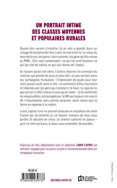 Dans "Ces gens-là", Lumir Lapray dresse un portrait intime et puissant des classes moyennes et populaires rurales en France. En revenant s'installer dans son village natal, l'autrice interroge ses proches et les habitants sur leurs joies, leurs colères et leurs espoirs. Elle met en lumière le malaise grandissant dans les campagnes françaises, marqué par le sentiment d'injustice, le mépris des élites et la montée de l'extrême droite. Lumir Lapray, militante pour la justice sociale et environnementale, appelle à une prise de conscience collective et à la solidarité pour éviter de perdre le lien social. Afficher moinsAfficher plus