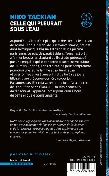 Dans ce thriller, une jeune femme est retrouvée morte dans une piscine parisienne. Le commandant Tomar Khan et son adjointe Rhonda enquêtent. Ils découvrent les sombres secrets liés à la souffrance de la victime, mêlant intrigues policières et drames psychologiques. Un roman haletant qui aborde les violences conjugales et les traumatismes avec finesse. Afficher moinsAfficher plus