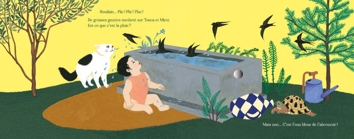 PrésentationSous le soleil chaud de l’été, les fleurs ont soif. Mimi veut aider la nature et entame une grande danse de la pluie ! Mais rien ne vient, pas une goutte. Heureusement que l’arrosoir est là ! Mimi le remplità l’abreuvoir et rafraîchit tout le jardin. Bravo, Mimi ! Une découverte de l’été au milieu des arbres fruitiers et des petits animaux du jardin. Cette nouvelle aventure avance au rythme des Danses Polovtsiennes (1869) d’Alexandre Borodine, extraites de son opéra  Le Prince Igor. Au premier plan, les percussions et les instrumentsà vents, sur lesquels Mimi dansera pour faire venir la pluie. Avec ses magnifiques peintures, Anaïs Brunet nous fait ressentir la chaleur de l’été. Afficher moinsAfficher plus