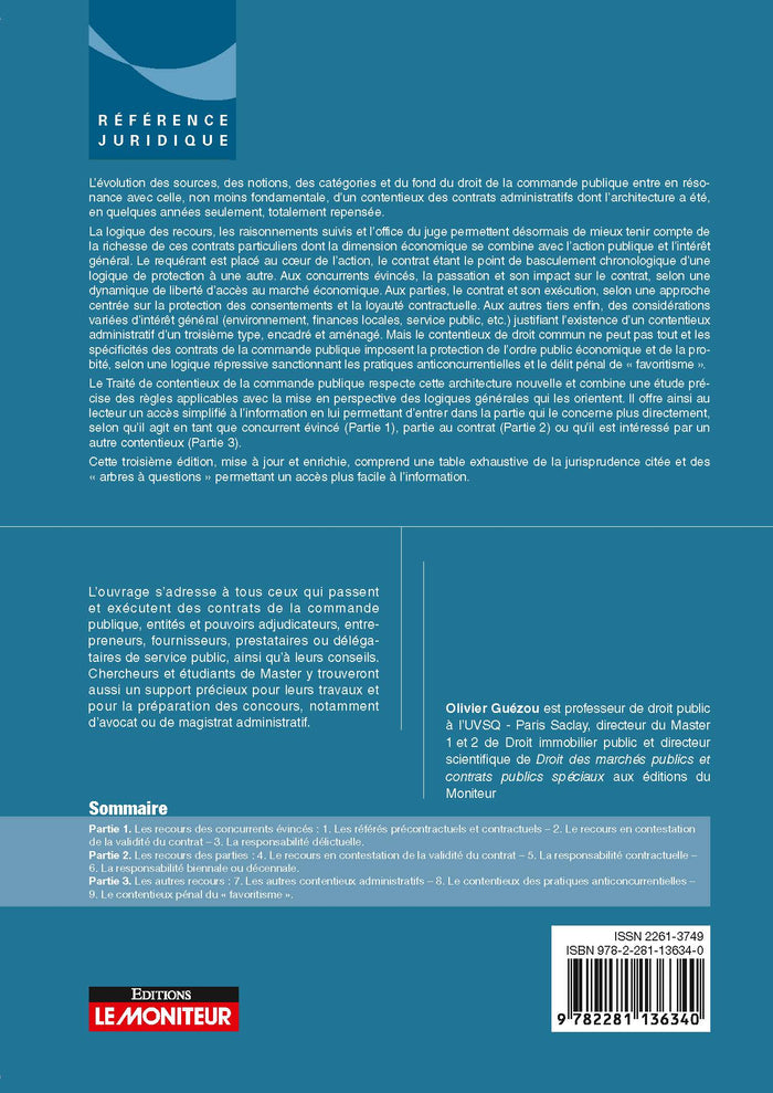 Ce traité aborde le contentieux des contrats administratifs, en particulier ceux de la commande publique. Il analyse les recours possibles, les implications du contrat pour les différentes parties, et les enjeux liés à la passation et à l'exécution de ces contrats. Cette troisième édition, mise à jour et enrichie, propose une approche claire et détaillée de la matière, avec une table exhaustive de la jurisprudence et des outils pratiques. Afficher moinsAfficher plus