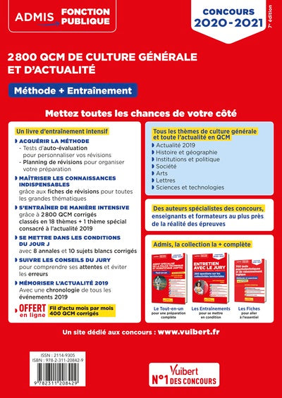 2800 qcm de culture générale et d'actualité - Méthode et entraînement - Catégories B et C: Concours 2020-2021