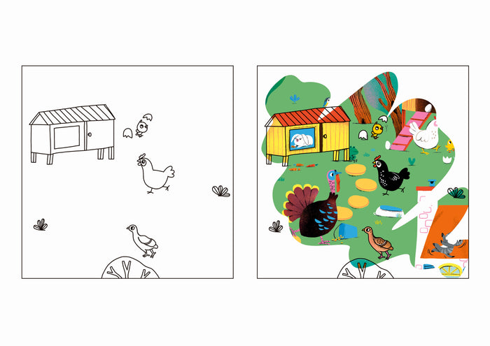Ce livre interactif permet aux enfants de colorier des scènes de la ferme en utilisant simplement de l'eau. En passant le pinceau magique sur les pages, les illustrations se révèlent en couleurs avant de disparaître, permettant de recommencer à l'infini. Une activité ludique et sans risque de taches pour les tout-petits, qui pourront s'amuser à découvrir les animaux de la ferme. Afficher moinsAfficher plus