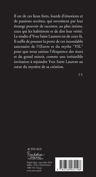 Mais, au-delà de ce que l'on connaît de cet artiste de renom, qui était-il vraiment ? En nous ouvrant les portes du studio de Saint Laurent, l'auteur nous invite au coeur de l'esprit du grand créateur, là où tout s'est joué, où l'oeuvre et l'artiste se sont construits. On y rejoint le couturier au plus intime de sa démarche créatrice. Entrouvrir la porte du studio est le sésame initiatique qui permet d'approcher au plus près le mystère Saint Laurent, tel un lieu sacré où l'on espère apprendre ses sortilèges.