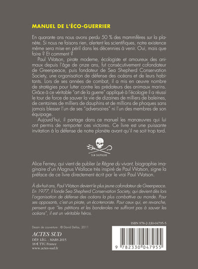 En quarante ans nous avons perdu 50 % des mammifères sur la planète. Si nous ne faisons rien, alertent les scientifiques, notre existence même sera mise en péril dans les décennies à venir. Oui, mais que faire ? Et comment ?Paul Watson, pirate moderne, écologiste et amoureux des animaux depuis l’âge de onze ans, fut consécutivement cofondateur de Greenpeace, puis fondateur de Sea Shepherd Conservation Society, une organisation de défense des océans et de leurs habitants. Lors de ses années de combat, il a mis en oeuvre nombre de stratégies pour lutter contre les prédateurs des animaux marins. Grâce à ce véritable “art de la guerre” appliqué à l’écologie il a réussi le tour de force de sauver la vie de dizaines de milliers de baleines, de centaines de milliers de dauphins et de millions de phoques sans jamais blesser l’un de ses “adversaires” ni l’un des membres de son équipage.Aujourd’hui, il partage dans ce manuel les manoeuvres qui lui ont permis de remporter ces victoires. Ce livre est une puissante invitation à la défense de notre planète avant qu’il ne soit trop tard.Biographie de l'auteurPaul Watson, pirate moderne, écologiste et amoureux des animaux depuis l'âge de 11 ans, fut consécutivement cofondateur de Greenpeace, puis fondateur de Sea Shepherd Conversation Society, une organisation de défense des océans et de leurs habitants.Toute l'œuvre d’Alice Ferney est disponible chez Actes Sud, notamment L’Élégance des veuves (1995 ; adapté en 2016 pour le cinéma par Tran Anh Hung sous le titre Éternité), Grâce et dénuement (1997, Prix Culture et Bibliothèques pour tous), La Conversation amoureuse (2000), Cherchez la femme (2013) et Les Bourgeois (2017, prix Historia du roman historique).Né en 1978, Cyril Dion est le cofondateur avec Pierre Rabhi du mouvement Colibris. Également cofondateur de la revue Kaizen, il publie son premier recueil de poèmes, Assis sur le fil, en 2014 aux éditions de La Table ronde. En 2015, il écrit et coréalise avec Mélanie Laurent le film Demain, qui obtient le César du meilleur documentaire en 2016. En 2017, il publie chez Actes Sud Petit manuel de résistance contemporaine.